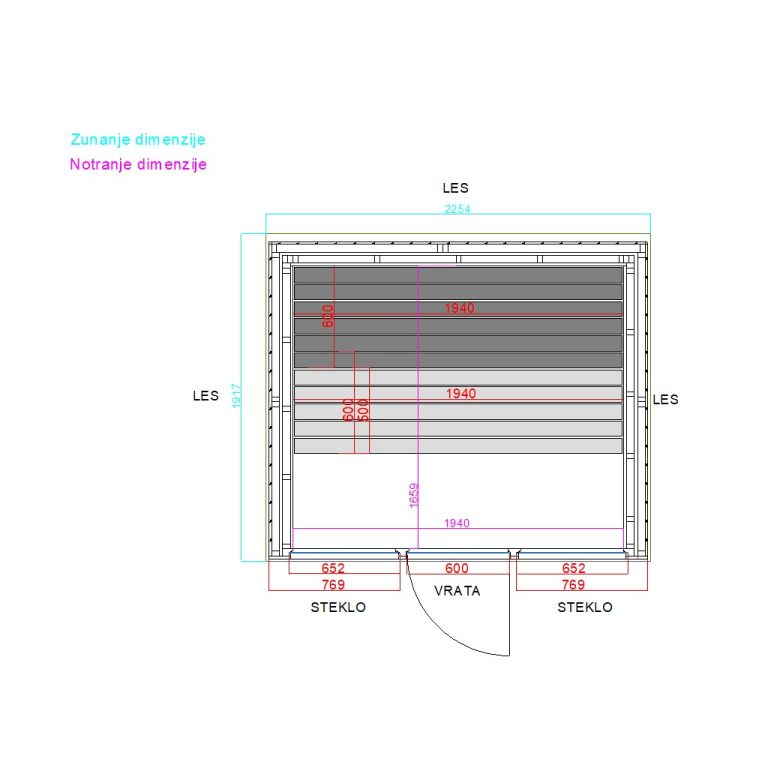 Notranje dimenzije: 194 × 166 x 195 cm (širina x globina x višina)