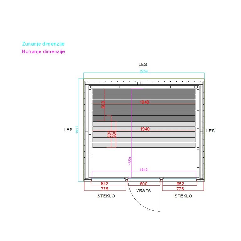 Notranje dimenzije: 194 × 166 x 195 cm (širina x globina x višina)